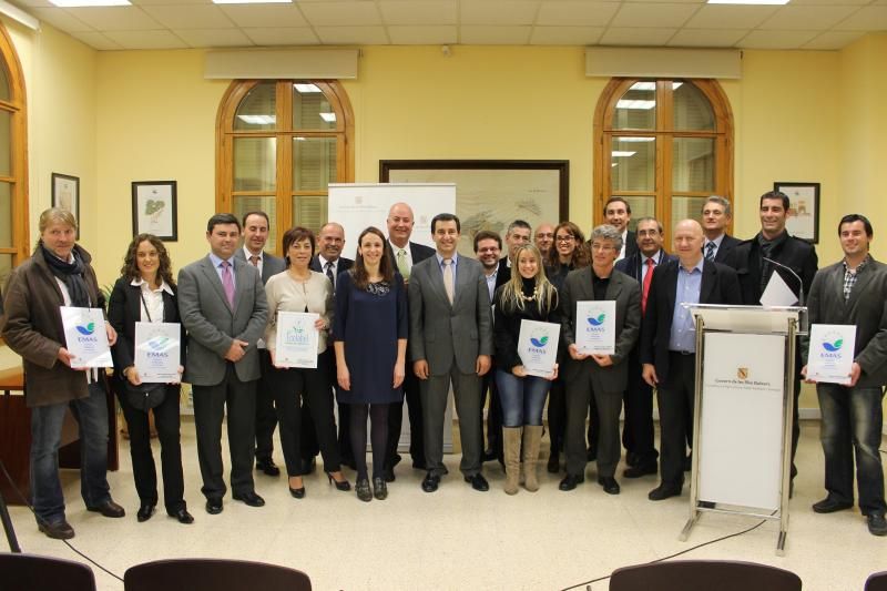 21-12-2012El conseller de Agricultura, Medi Ambient i Territorio, Gabriel Company, y la directora general de Medi Natural, Educación Ambiental i Canvi Climatic, Neus Lliteras, hacen entrega de las placas distintivas a los establecimientos, empresas i servicios que se han adherido o que han renovado la adhesión a los sistemas de gestión ambiental EMAS i Ecolabel, ambos promovidos por la Unión Europea.-