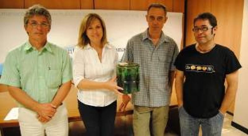 20-06-2013La regidora de Cementerios del Ilmo. Ayuntamiento de Manacor Sra. Maria Bover ha presentado en rueda de prensa el proyecto de URNA SOLIDARIA. El proyecto ha sido ideado conjuntamente por APROSCOM Y PARC DE L′AUBA. Las Urnas cinerarias son confeccionadas por trabajadores con discapacidad intelectual logrando con esta iniciativa la integración laboral de dicho colectivo.-