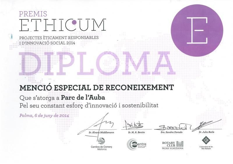 PARC DE L′AUBA RECIBE MENCION ESPECIAL EN LA 1ª ENTREGA PREMIOS ETHICUM (6.6.2014)